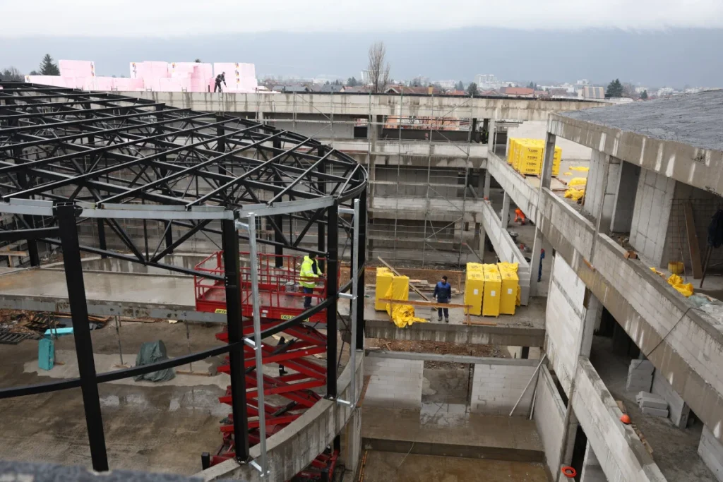 Istovremeno su unutar građevine intenzivni zidarski radovi, kao i postavljanje podova, pregrada i plafona. Ugrađuje se i savremena aluminijska fasada kojom će se, osim estetske vrijednosti, postići visoki standardi energetske efikasnosti i dugotrajnosti zgrade.